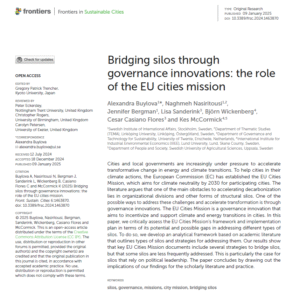Nu finns vår artikel ‘Bridging silos through governance innovations: the role of the EU cities mission’ publicerad. Artikeln diskuterar hur EUs Cities Mission arbetar för att överbrygga stuprör och presenterar ett ramverk som kan vara användbart för fler aktörer.