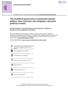 Nu finns vår artikel ‘The multilevel governance of polarised climate politics: how a pioneer city navigates a dynamic political context’ publicerad. Artikeln undersöker hur Stockholms stad navigerar en dynamisk politisk kontext för att uppnå sina klimatmål.
